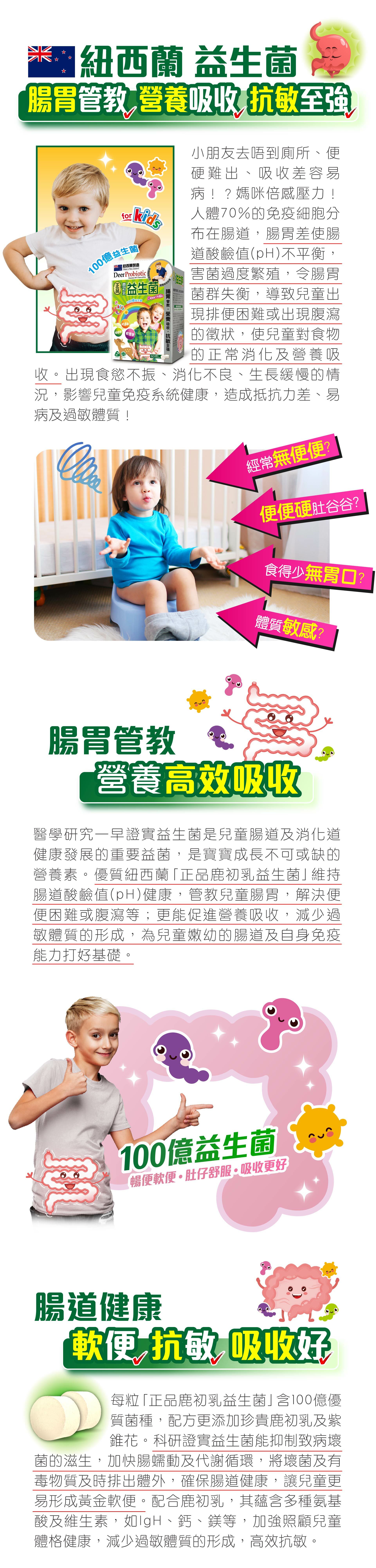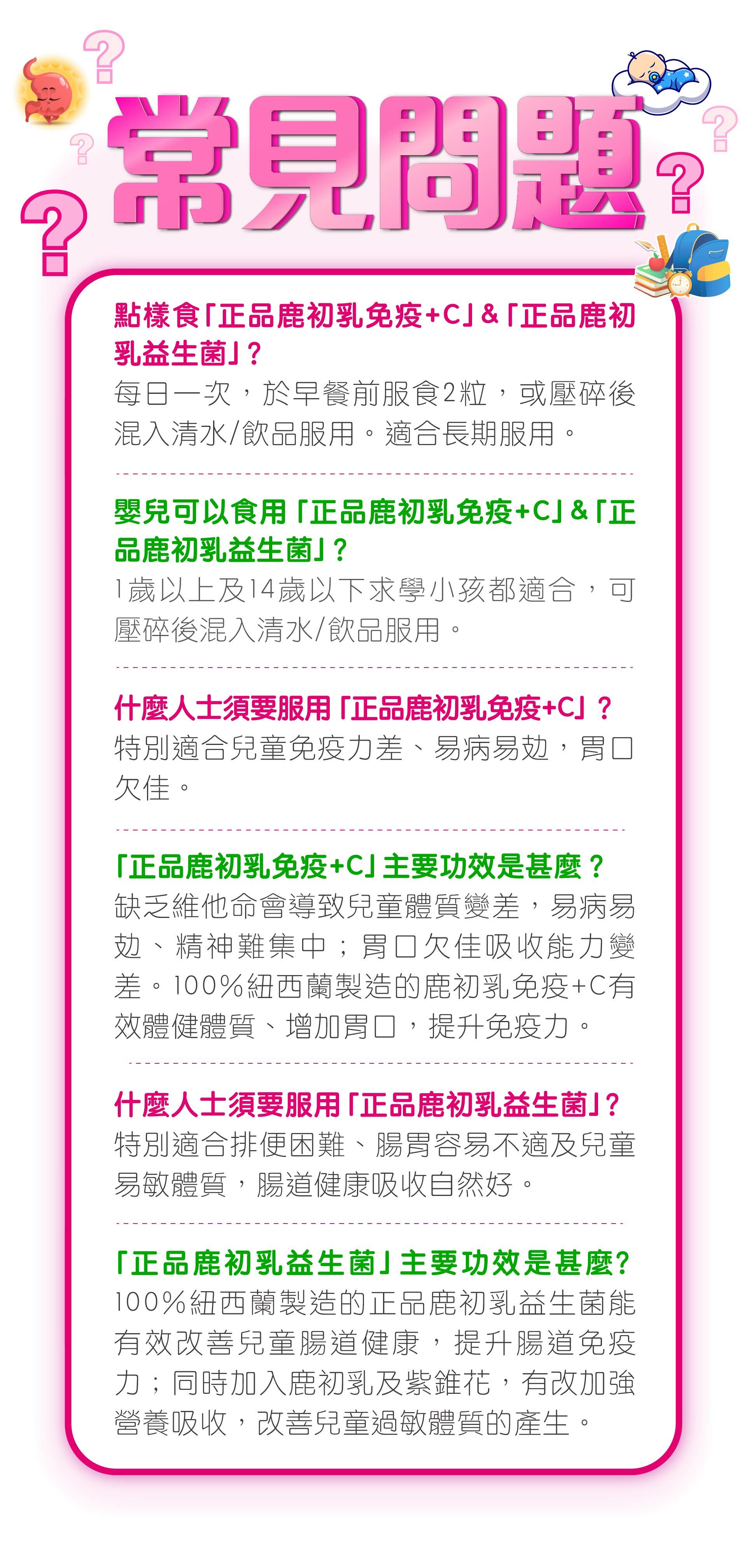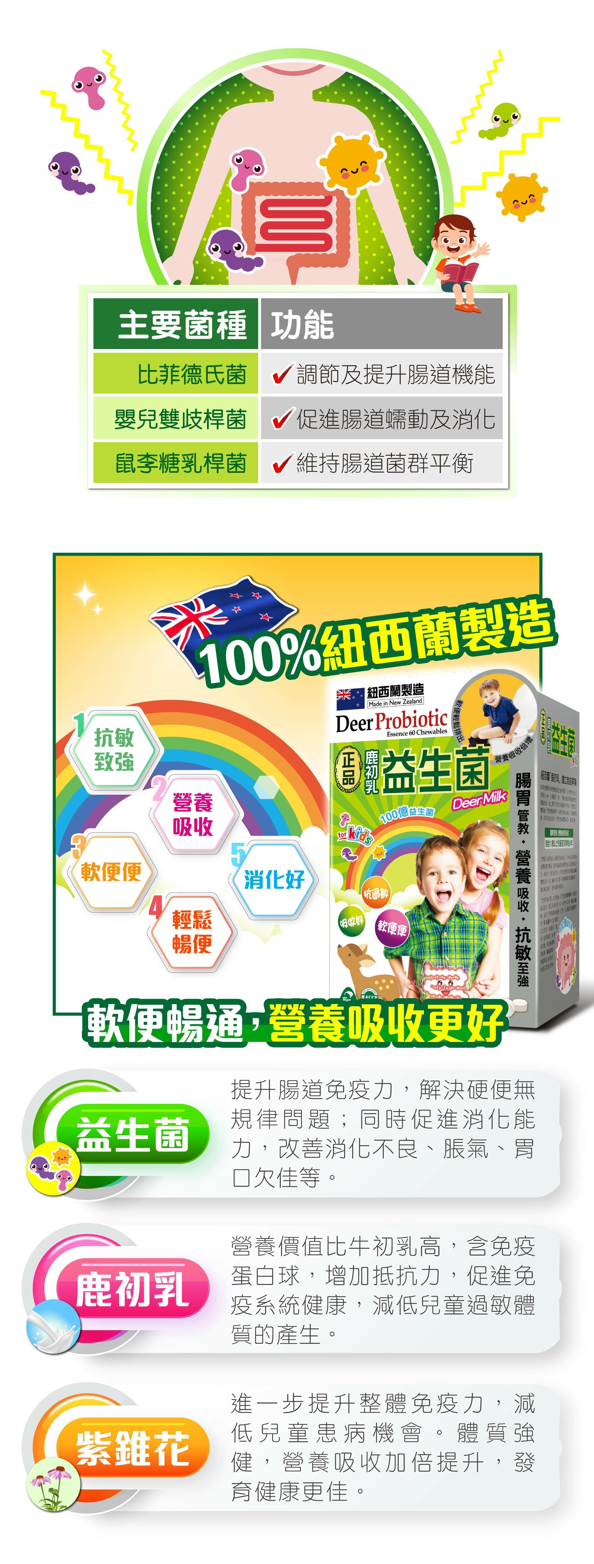 醫學研究指兒童處於黃金發育時期,需要吸收大量的營養素。而部份營養素是人體自身所不能合成的或長期貯藏的,必需不斷地補充。優質紐西蘭「鹿初乳免疫+C」為兒童提供維他命A-E多種營養素供成長所需,幫助小朋友發育好、易長高,體格更強健,更加入紫錐花,進一步提升免疫力,小朋友自然健康不易病!